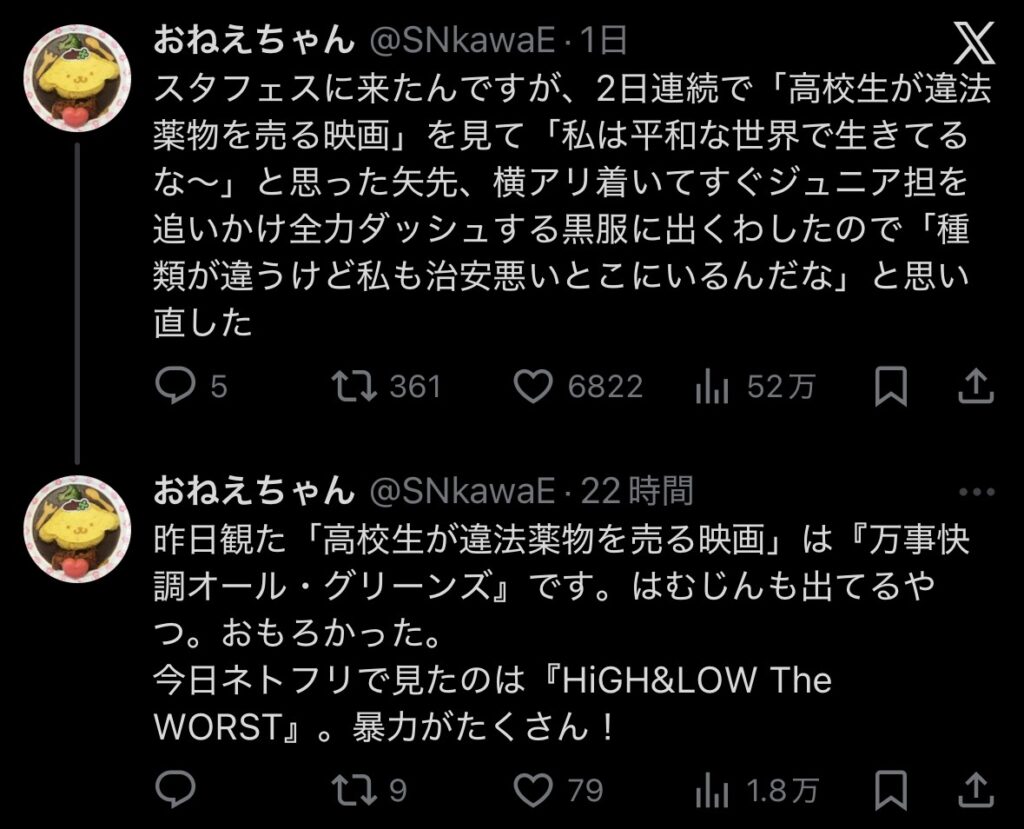 (万事快調オール・グリーンズもHiGH&LOW The WORSTもおもしろいのでおすすめです!)